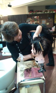 仕事が終わると、みんな人形(ウイッグ)をバックルームから持ち出して、日々ヘアスタイルの勉強をしています!